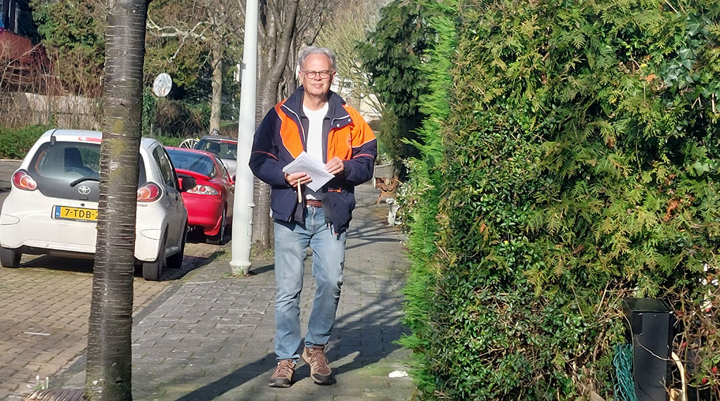 Tijd voor mijn laatste ronde dus, afgelopen donderdag. Met de vele stempassen voor de aanstaande verkiezingen waren mijn fietstassen weer ouderwets vol. Gelukkig was het een fraaie lentedag en werd het een mooi afscheidsrondje. Door het zachte weer waren er veel bewoners op straat die me, als ze wisten dat het m’n laatste ronde was, een mooi pensioen toewensten.
