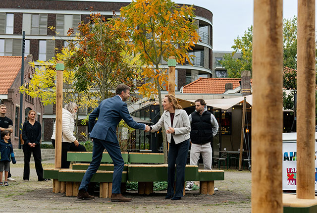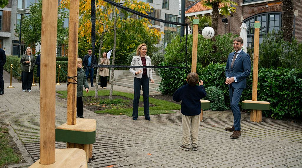 ‘Als ontwikkelende belegger van woningen en woongebieden geloven wij dat een buurt pas écht een thuis wordt als mensen elkaar kunnen ontmoeten’, vertelde Heleen Aarts tijdens de ceremonie. ‘Vanuit die overtuiging is dit jubileumcadeau ontstaan: een bijzondere samenstelling van speel-, zit- en doe-elementen in het hart van een buurt.’