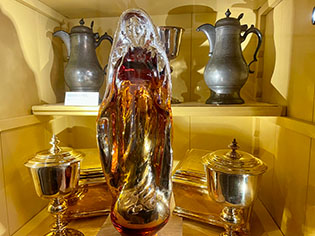 Het zijn een beetje Fremdkörpers, die glazen madonna-achtige beelden in historische stijlkamers in de stijl-protestante omgeving, die juist is ontdaan van elk beeld.