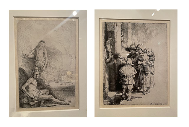 In het werk- en woonhuis van Rembrandt van Rijn kwam, zoals gebruikelijk in die tijd, alles samen. Hij woonde er, leidde leerlingen op, ontving klanten en maakte er zijn meesterwerken. Een ets met twee schildersmodellen op de voorgrond en daarachter een dienster dat een kind leert lopen in een loopstoel. En een snelle schets van zijn zieke vrouw Saskia in bed. De verloren zoon, een Bijbelse figuur. Onze gastvrijheid en liefdadigheid gaat niet zelden tot aan de voordeur. Dat zag de oude meester ook al.