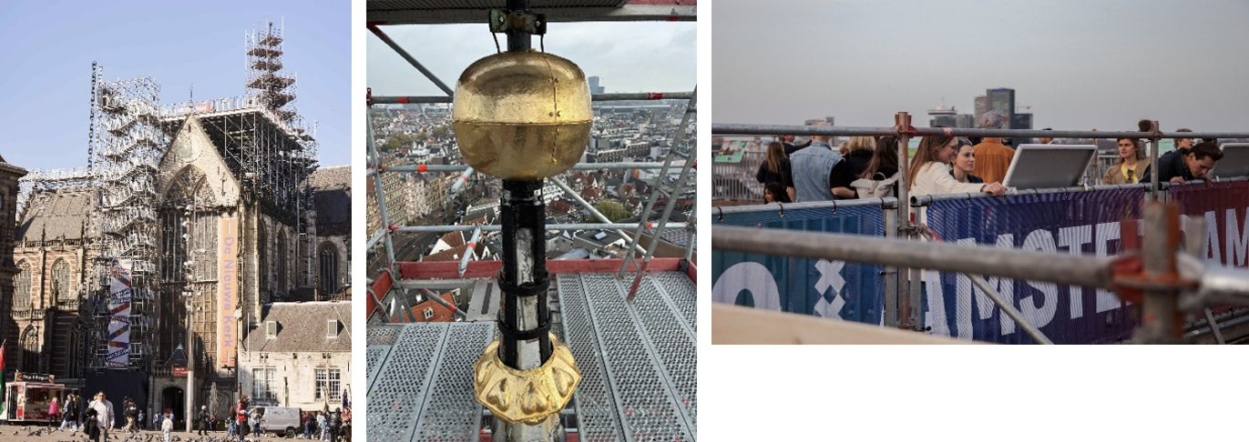 In het kader van 750 jaar Amsterdam werd bezoekers de unieke gelegenheid geboden het dak op 40 meter hoogte te beklimmen, om zo de historische restauratie van de spitstoren van dichtbij te zien. En ook meteen de Dam en skyline van Amsterdam te bewonderen. ‘We hebben al veel torens gerestaureerd, maar nog nooit met zoveel bekijks en onder toeziend oog van zoveel geïnteresseerde bezoekers’, aldus het restauratieteam.