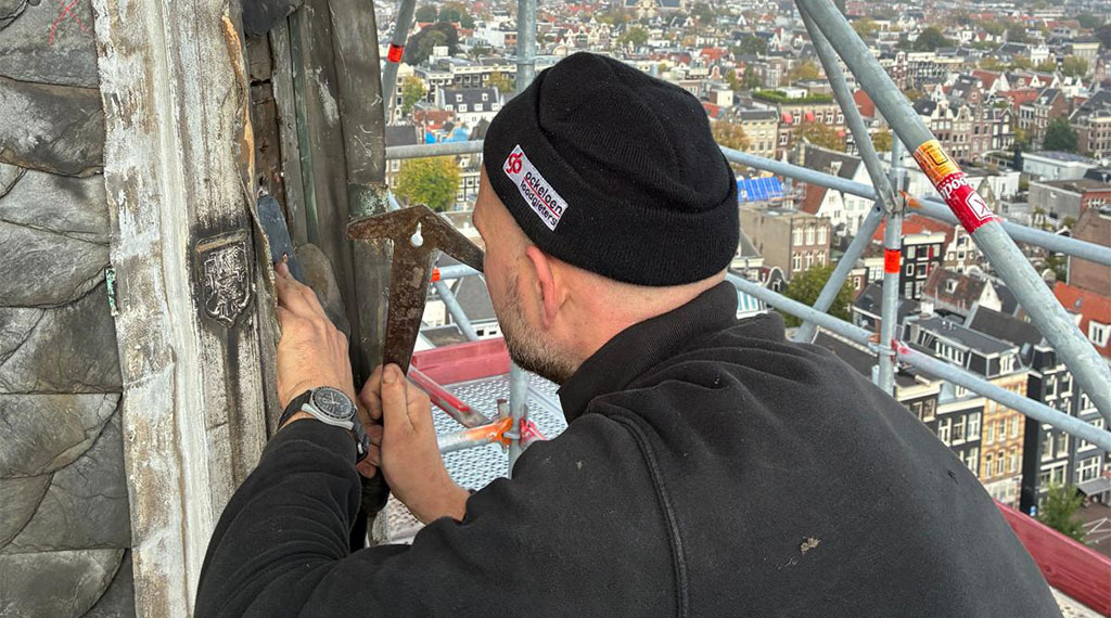 De afgelopen zeven maanden werkten tientallen restaurateurs, timmermannen en dakdekkers hard aan de restauratie van de vijftiende-eeuwse kerk in hartje Amsterdam. Ze vervingen kapotte leistenen en houtconstructies die in slechte staat verkeerden, verwijderden overbodige oude klimijzers, haken en beugels en vervingen lood.