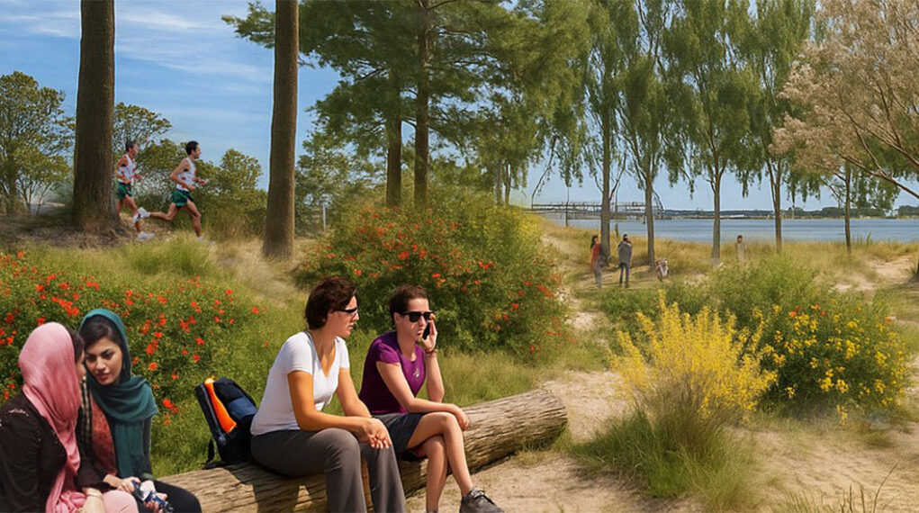 Het park komt op de meeste oostelijke punt van het Zeeburgereiland, aan de IJburgbaai. Er komen ook speel- en sportplekken en mogelijkheden om het water op te gaan. Behalve dit park komt er uiteindelijk ook een grote tramstalling aan de oostkant van het eiland.
