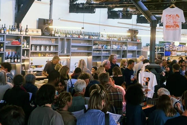 Midden in het restaurant staat het wijnhok: een aparte kamer waar bezoekers zelf een fles uitzoeken. De selectie richt zich sterk op biologische en natuurwijnen, zowel open als per fles.