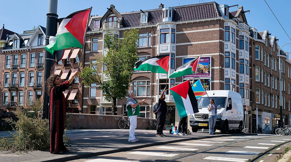 Het voortdurende genocidale geweld door Israël in Gaza, en de labbekakkerige reactie daarop van de Nederlandse overheid, zorgt voor steeds meer protest onder de bevolking. Zoals het kleine groepje mensen dat elke zondagmiddag met Palestijnse vlaggen staat te zwaaien op de Oetewalerbrug, tussen Linnaeusstraat en Middenweg.