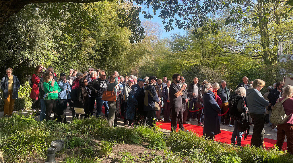 Het was meer dan gezellig druk, het zonnetje deed z’n best, er waren bubbels en gezonde snacks, een heuse fanfare en twee toespraken. De rode loper werd letterlijk uitgerold voor waar het allemaal om draait: de bijzondere planten die samen de collectie van de Hortus vormen. De fanfare was duidelijk in vorm; de aanwezigen hoorden ze wel naderen, maar zagen hen aanvankelijk niet. Er werd ook een groen lied gezongen. Blijdschap alom.