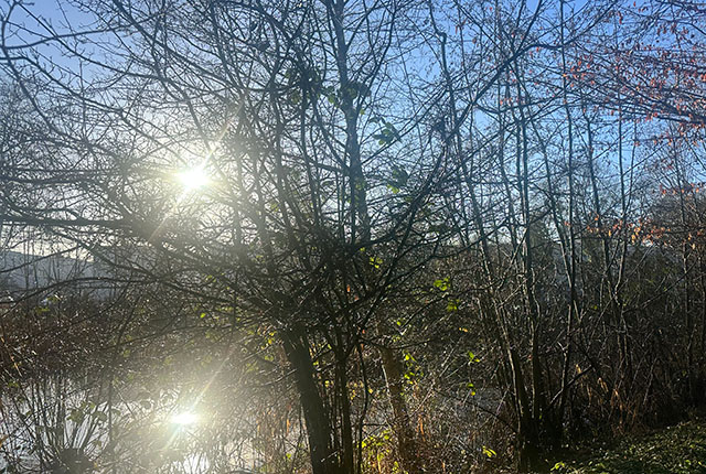 Langs de sloot richting Betondorp slingert een pad. In de struiken langs de buitenrand verscheen een wintergast: de koperwiek. Kraaien riepen nadrukkelijk; ‘past wel bij een begraafplaats’, grapte een van de deelnemers over de zwarte kraai. Een merel schoot plots op, een roodborstje keek verrast mee.