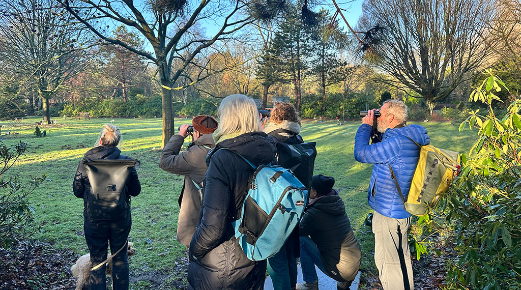 Onder een stralende winterzon verzamelde een groep van veertien vogelliefhebbers zich rond tien uur bij de ingang van De Nieuwe Ooster aan de Kruislaan. In twee groepjes, met een mix van ervaren en beginnende vogelaars, startte een ontdekkingstocht langs de paden van deze bijzondere plek. De excursie kwam tot stand via Vogelwerkgroep Amsterdam.